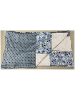 Nos doudous sont conçues avec façade en courtepointe selon différents motifs et l'arrière en polar matelassé en gris ou en blanc.